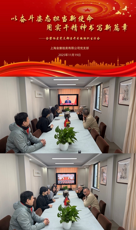 2025年11月19日,金磐拍卖党支部在公司会议室组织召开专题组织生活会,深入学习领会习近平总书记在庆祝中华人民共和国成立76周年招待会上的重要讲话精神。