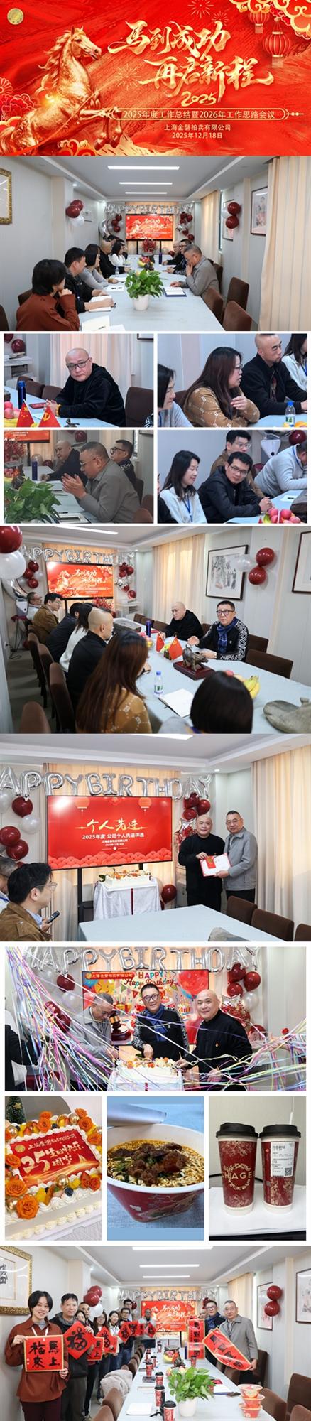2025年12月18日,上海金磐拍卖有限公司隆重召开2025年度工作总结会议暨2026年工作思路会议和公司成立二十五周年司庆活动。会议全面回顾了公司在2025年度工作中的成果与不足,明确了2026年发展战略与重点方向。