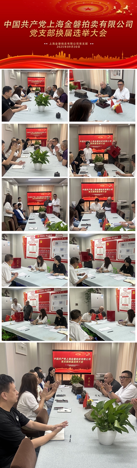 2025年09月30日,上海金磐拍卖有限公司党支部按照《中国共产党章程》和《中国共产党基层组织选举工作条例》有关规定,经上级党委批准,隆重召开支部党员大会,圆满完成党支部换届选举工作。