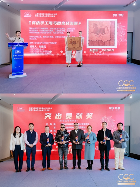 2026年2月3日下午,以“文以载道,商通天下”为主题的上海市工商联文化商会2025年会顺利举行。此次年会由商会与会员共创,旨在展示商会链接的优质资源、企业家们的商道智慧以及会员企业文化产品所承载的理念与创意,并得到了社会各界及会员单位的鼎力支持,实现了出海、艺术、公益、拍卖、科技、旅游、餐饮等跨行业及服务资源多维联动。