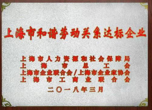 为了更好地发挥和谐劳动关系创建活动的示范引领作用,加强劳动关系矛盾的源头治理,推动企业建立规范有序、公平合理、互利共赢、和谐稳定的劳动关系。市人社局、市总工会、市企联、市工商联联合评审上海市和谐劳动关系达标工作。我公司积极深入开展和谐劳动关系创建活动,构建规范有序、公正合理、互利共赢、和谐稳定的劳动关系,获得“上海市和谐劳动关系达标企业”称号。